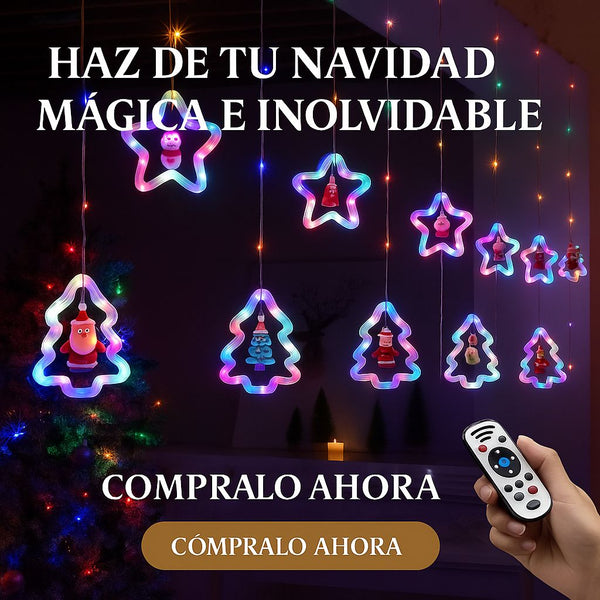 Luces Cortina Navideña. Estrella y Arbol